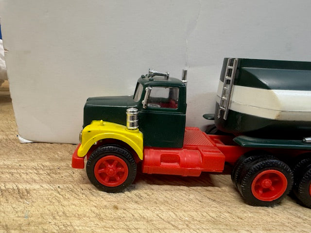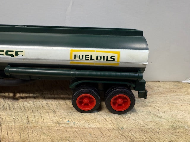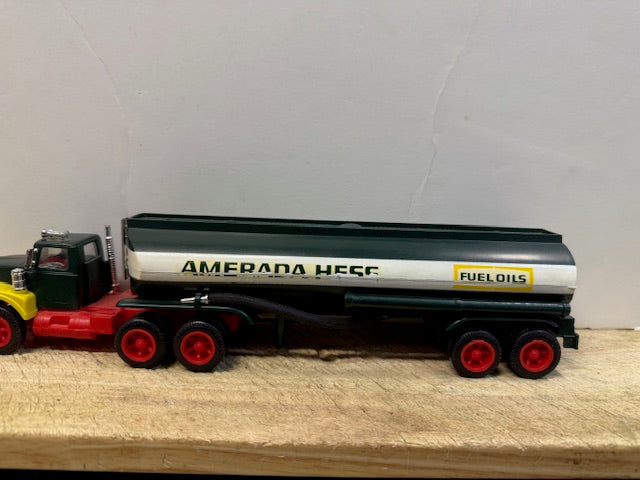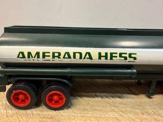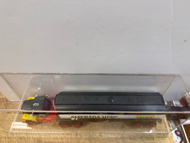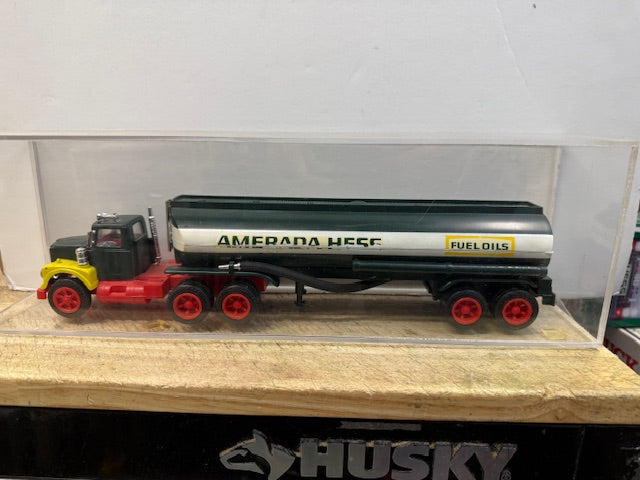 You are purchasing a beautiful condition 1969 Amerada Hess Tanker truck with display. As you can see in the pictures, the tanker truck is in immaculate condition with the details being original and visible. The tanker lights do work in the front and rear with the switch as they should. The battery terminal is clean as seen in the pictures. this truck has factory original decals The box is not included with this sale. The display case was custom-made for this tanker truck.